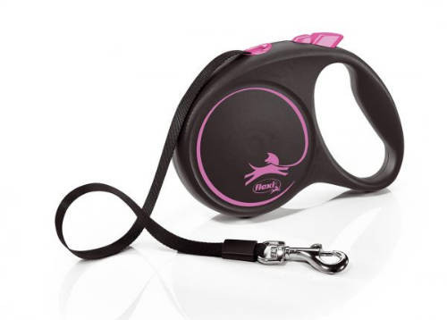 Flexi Black Design "L" (pink) - szalagos automata póráz (5m)- 50 kg testtömegű kutyák részére - automatán felcsévélődő szalag